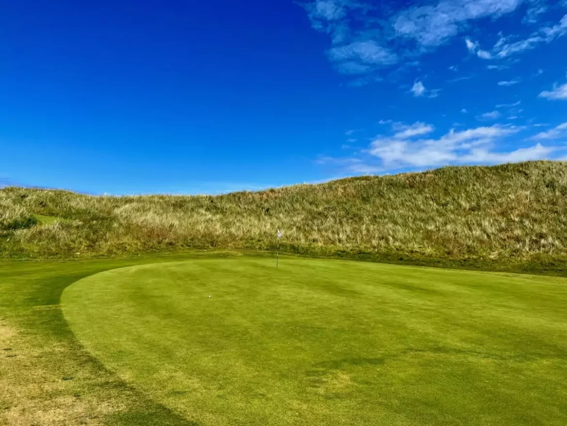 Wokół przestrzeń i dużo wysokich traw. Wody nie ma. Trochę głębokich bunkrów. Z niektórych dołków widoczne morze. Jakość fairwayów średnia, greenów poprawna. Podobały mi się 8., par 4, 9., par 3 i 18., par 4. Słaby dom klubowy. Umiarkowanie polecam.